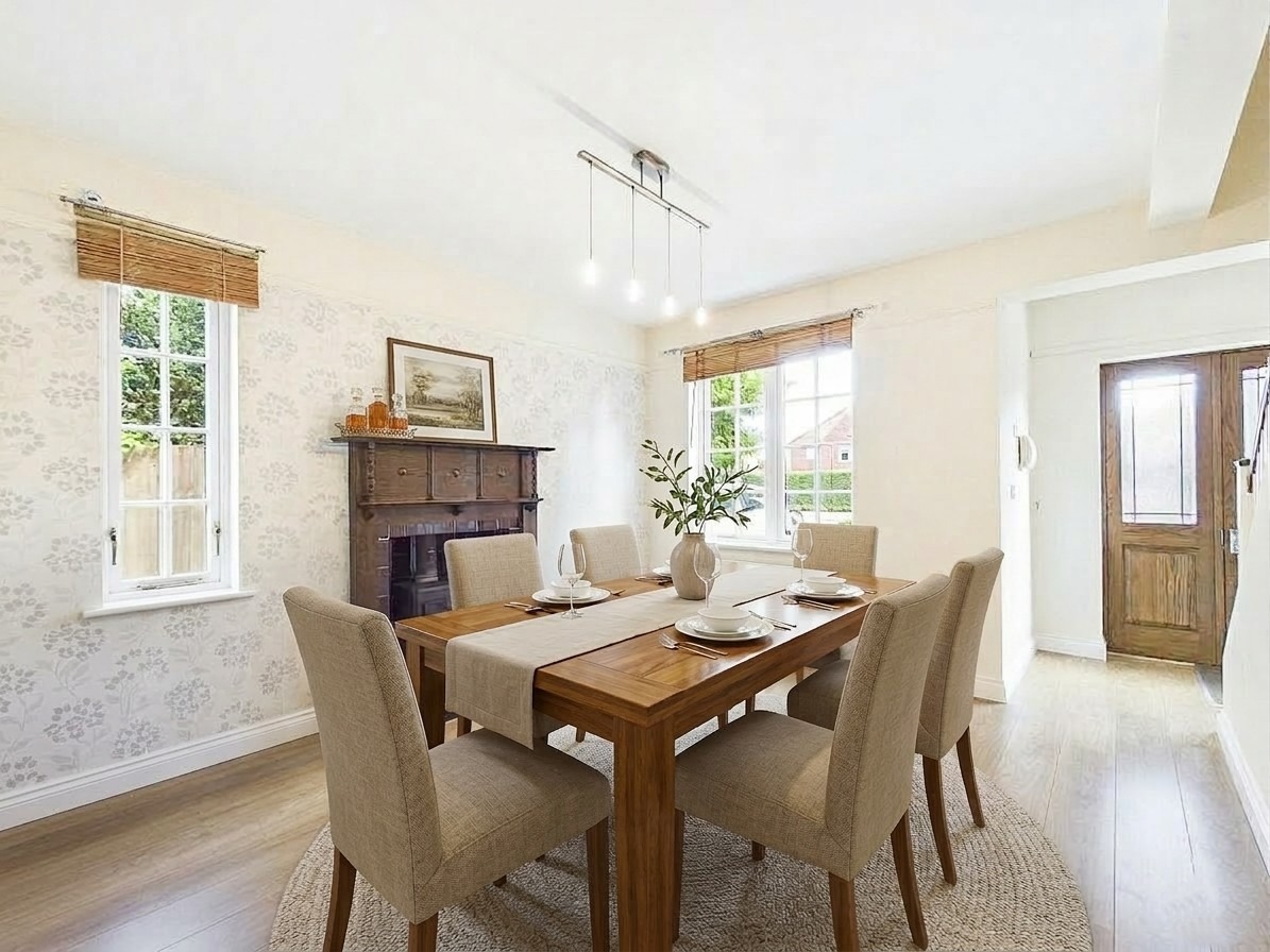 The home welcomes you through an entrance lobby which flows directly into the dining room 3.45m x 5.12m (11’4” x 16’10”), this generous space creates an excellent first impression and works beautifully as a formal dining or entertaining area.