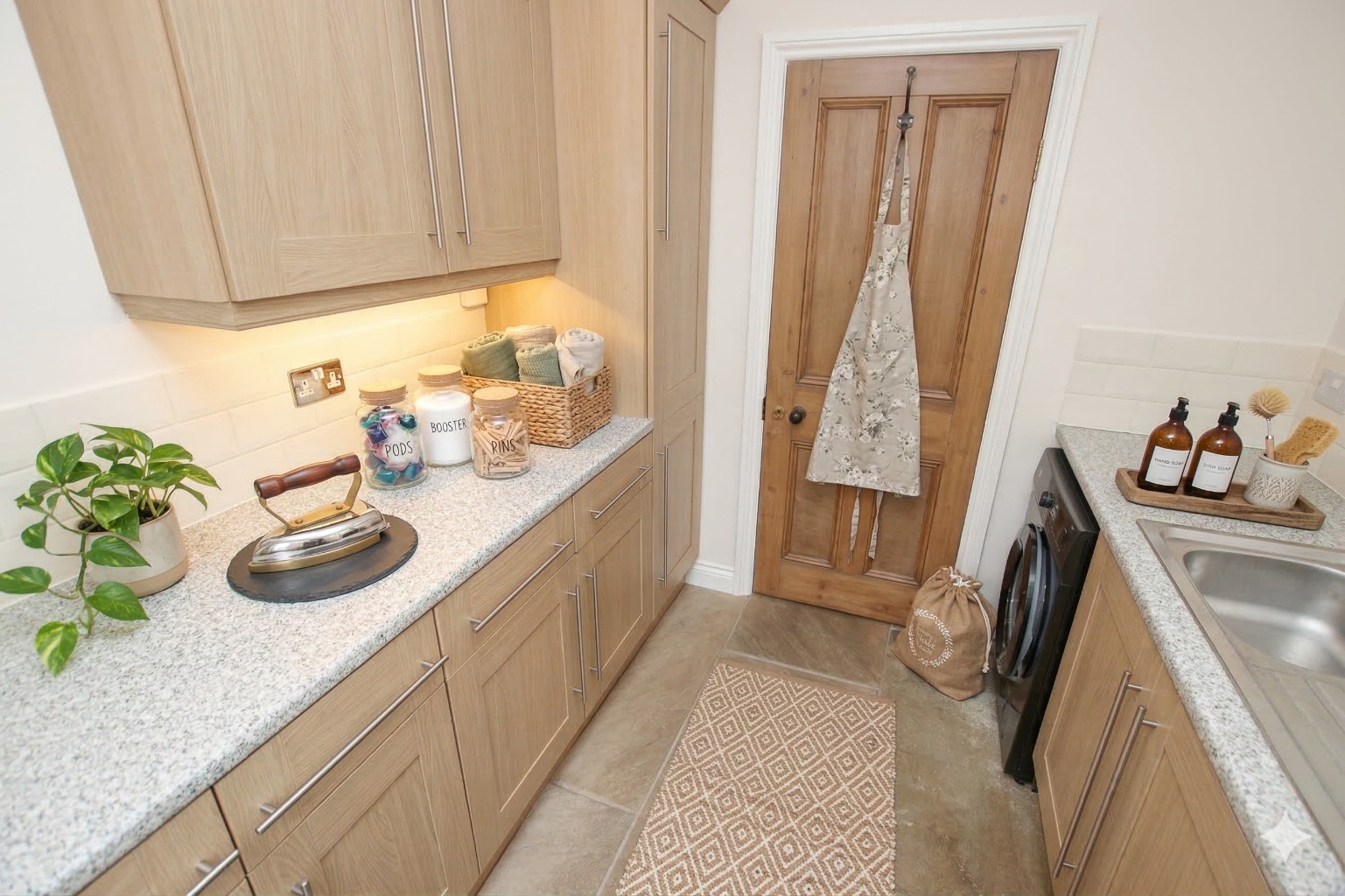 The breakfast kitchen is a practical and sociable space measuring 3.94m x 4.51m (12’11” x 14’10”), offering plenty of room for cooking, dining, and everyday family life. Adjacent to the kitchen is a useful utility room measuring 2.32m x 2.42m (7’7” x 7’11”), perfect for laundry and additional storage, while the cloakroom/WC measuring 1.58m x 2.32m (5’2” x 7’7”) provides convenience for guests.